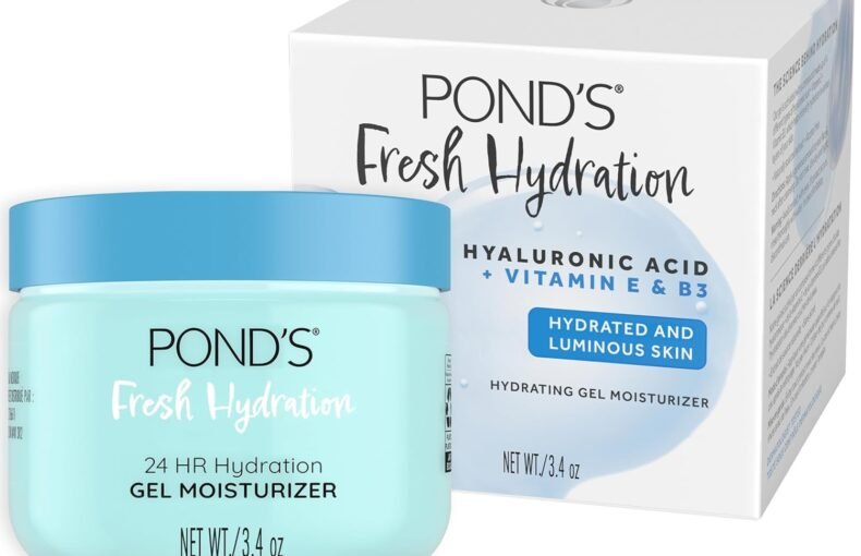 POND’S Fresh Hydration Gel Moisturizer – 24 HR Hydration with Vitamin E, Hyaluronic Acid & Vitamin B3 – Alcohol & Oil-Free Face Moisturizer – Dermatologist Tested, 3.4 oz