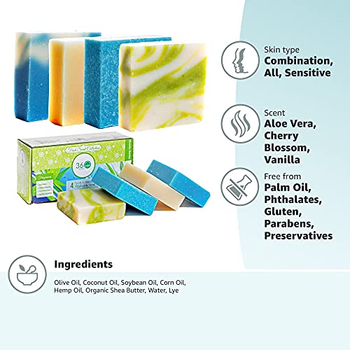 360Feel Fresh Scent Soap bars- Aloe Vera, Cotton Blossom, Spring Scrub- Anniversary Wedding Gift Set – Handmade Natural…