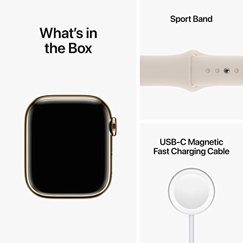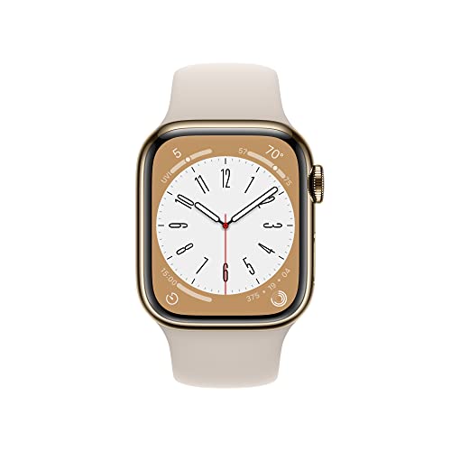 Apple Watch Series 8 GPS + Cellular 41mm Gold Stainless Steel Case with Starlight Sport Band – S/M with AppleCare+ (2…