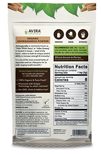 Avira Organic Ashwagandha Powder, Indian Ginseng, Allergen Free, Vegan, Non-GMO, Superfood, Easy to Mix in Smoothies…