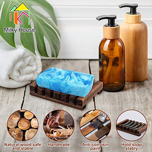 ❤【Handcrafted & Perfect 4 Pieces Size】Milky House wood soap dishes are sold in a pack of 4, perfect size at 4.5*3.1*0.87 inches (11.5*8*2.2 cm), no take up much space, perfect for travel. Each bar soap holder is handcrafted from the pinewood, every soap dish is unique-particular and comes with different color, shape, texture. Allows for complete drainage for longer lasting soap bars Extends life of handmade soaps. The wooden soap dish is excellently crafted& is reliable to use for a long time.