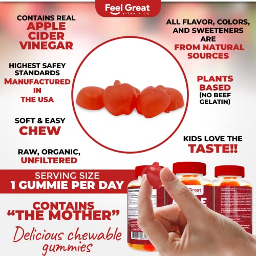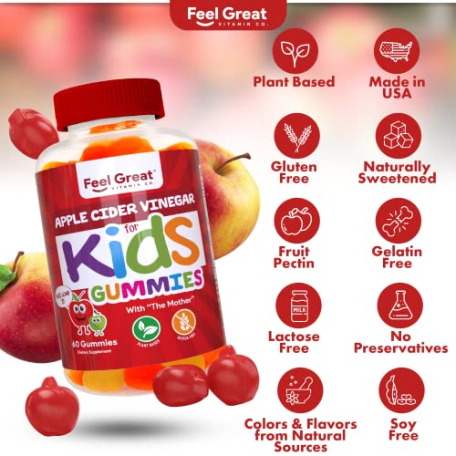 Feel Great Vitamin Co. Apple Cider Vinegar Gummies for Kids | Digestive & Immune Support | Natural Antioxidant…