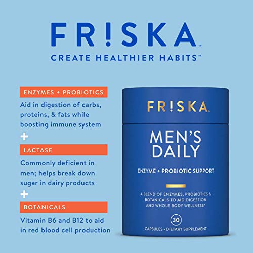 FRISKA Mens Daily | Digestive Enzyme and Probiotics Supplement | Lactase and B-Vitamins for Natural Digestion and Daily…