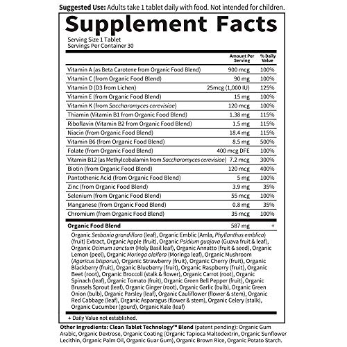 Finally, a Certified Organic, Non-GMO and Vegan one-a-day multi that’s made from over 30 real, nutritious foods. mykind Organics Men’s Once Daily is a once daily whole food multivitamin formulated specifically for men. It promotes sustained energy while supporting metabolism and heart health†, with 100% DV or more of 15 vitamins and minerals from Organic fruits, vegetables and herbs such as kale, sea kelp, broccoli, parsley, ginger and amla berry. A single tablet provides vegan D3 (from lichen), B12 (as Methylcobalamin from Saccharomyces cerevisiae), and Selenium (from guava) for prostate health, with no synthetic vitamins, binders or fillers. All of this goodness is wrapped up using Garden of Life’s patent-pending Clean Tablet Technology – an entirely new way to make vitamins. Where many other vitamin “tablets” use unrecognizable things such as magnesium stearate, stearic acid and lac-beetle resin (shellac) to bind and fill the tablet, we use only Certified USDA Organic, Non-GMO Project Verified foods. mykind Organics—the first of its kind.