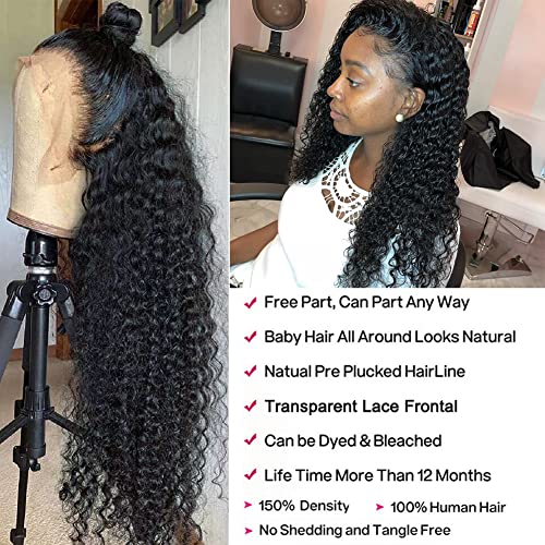 Vallbest Glueless Deep Wave Lace Front Wigs Human Hair Transparent Lace Frontal Wigs Pre Plucked with Baby Hair 10A…