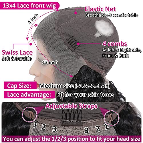 【Lace and Cap size】13×4 ear to ear Lace Frontal wigs human hair,can be the side parting and middle parting styles.22.5inch medium cap size,comes with adjustable Straps(19.5inch-22.5inch adjustable range) and 4 Combs on sides,back and front.