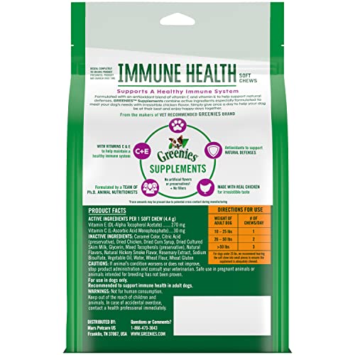Greenies Immune Health Dog Supplements with an Antioxidant Blend of Vitamin C and E, 90-Count Chicken-Flavor Soft Chews…