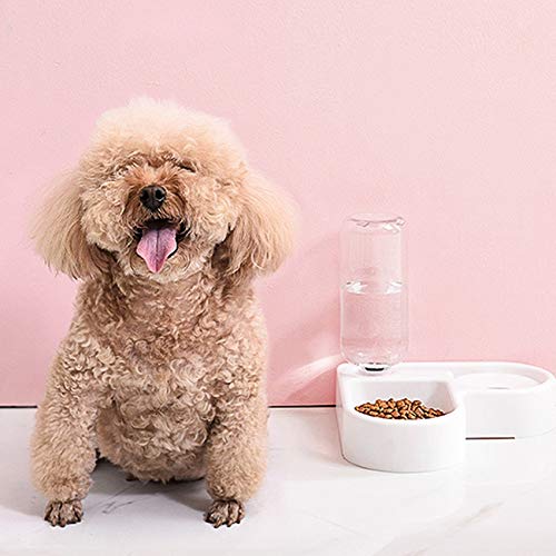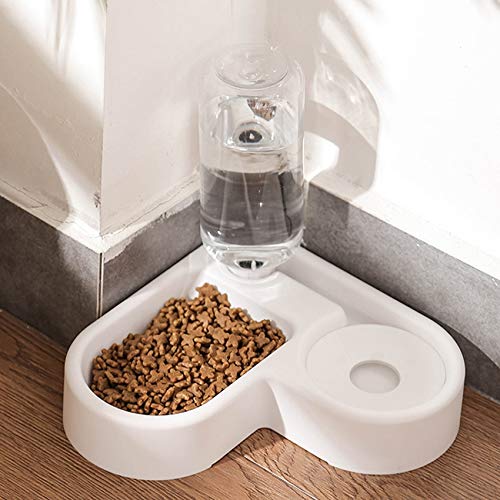 Unique double bowls, 500ml large-capacity water bottle, large-capacity food basin, meet two requirements at one time, suitable for placing anywhere in the home, office for favorite pets.