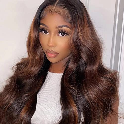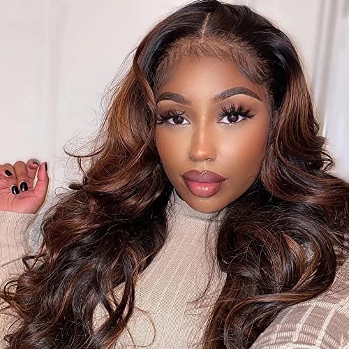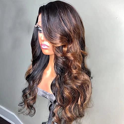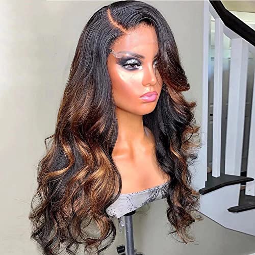 Highlight Wigs 1B 30 Ombre Color Body Wave Human Hair Wig 13×6 HD Transparent Lace Front Human Hair Wig Loose Wave…