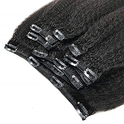 Kinky Straight Clip in Hair Extension Brazilian Remy Human Hair Clips on Coarse Italian Yaki Full Head Clip in Human…