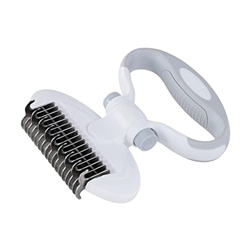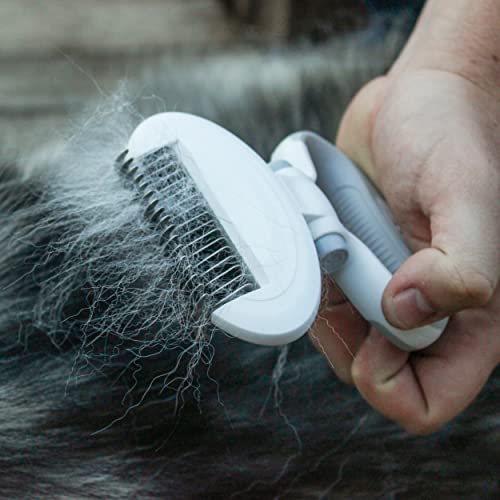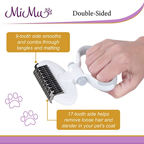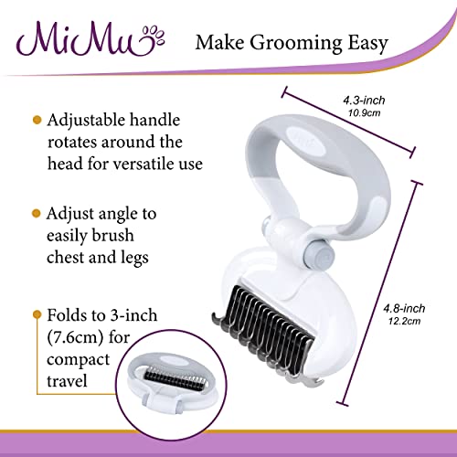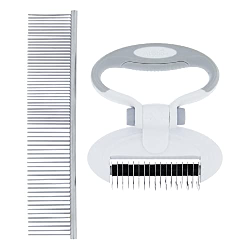 MiMu Dog Deshedding Brush with Handle and Comb – White Shedding Brush Dog Hair Undercoat Rake for Dog and Cat Grooming
