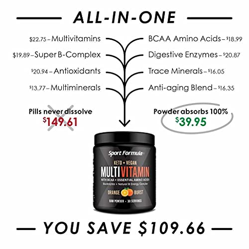 Multivitamin Powder – Keto Drink Mix for Men Women BCAA Amino Acids Won’t Upset Your Stomach – Keto Vegan Multivitamin…