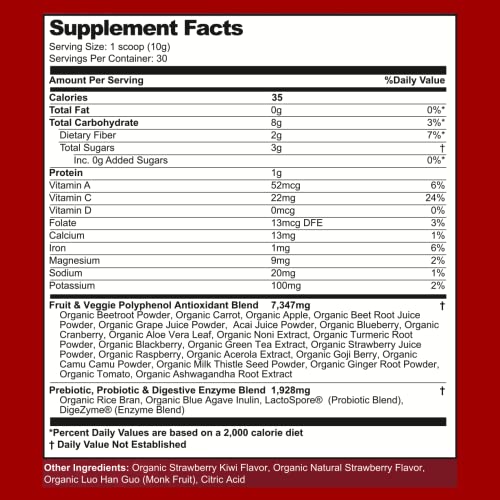 NUTRITIONAL POWERHOUSE – Over 20 servings of fruits, vegetables, and superfoods, plus 14 vitamins, 72 minerals, and triple digestive support in a delicious superfood powder! Reap the benefits of polyphenol-rich whole foods, digestive enzymes, and probiotics for vibrant wellness.