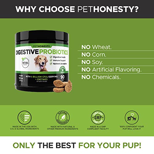 Pet Honesty Digestive Probiotic Soft Chews for Dogs – Natural Digestive Support, Immunity Health, Seasonal Allergies…