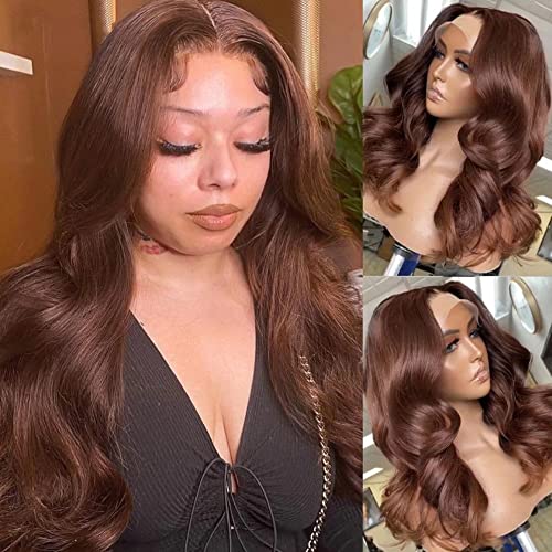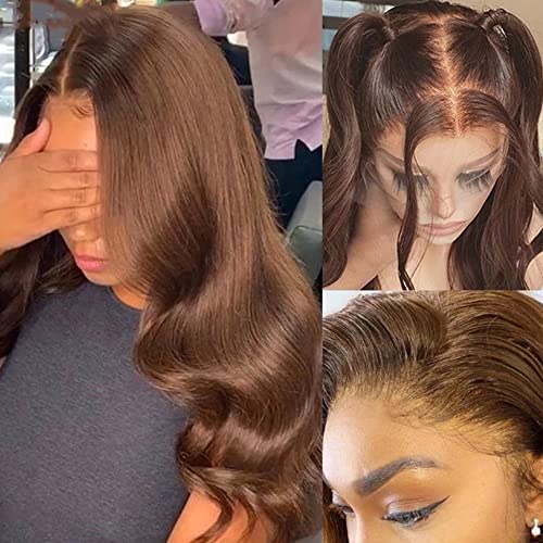QUINLUX WIGS 180% Density Full End Body Wave HD Lace Front Wigs Brown Human Hair Pre Plucked For Black Woman HD…