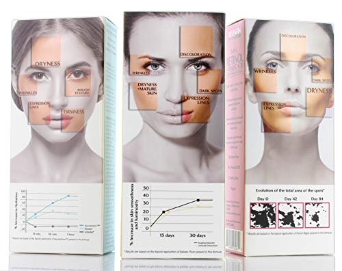 Anti-aging serum with collagen hydrates skin while targeting extreme dryness, dark spots, deep wrinkles, rough skin texture, and expression lines around lips, forehead, and jaw line.