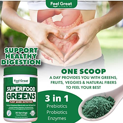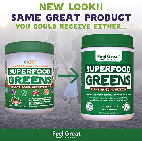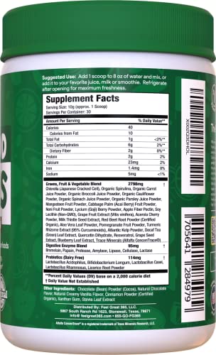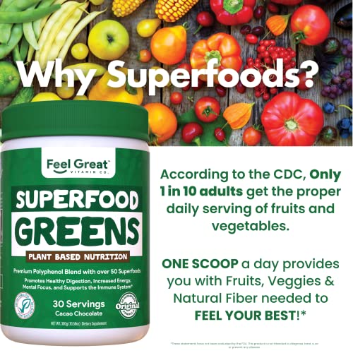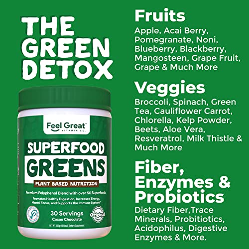 Organic Superfood Greens Powder – Cocoa Chocolate | Super Greens Fruit & Vegetable Supplement | Over 20 Greens, Fruits…