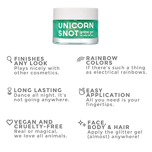 COSMETIC-GRADE GLITTER: Fun and bright glitter gel made in multiple shades of color. This glitter gel can be used on eyes, face, body, or wherever you like! It has cosmetic-grade glitter and is safe for use on the face or skin. Available in 1.7 fl oz/ 45ml jars of Holographic Glitter Gel.