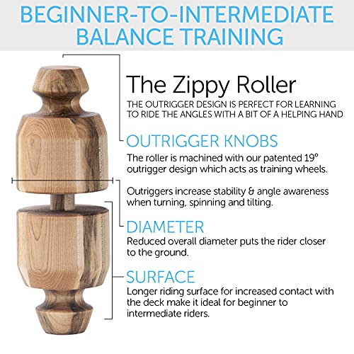 UNIQUE OUTRIGGER KNOBS: The Zippy Roller is built with outriggers on both ends, which are often referred to as “The Knobs”. The outriggers act similarly to training wheels on a bicycle, providing riders with a reference point as they get up on edge. The 19° taper will also help beginners level up their angle awareness and balance training.